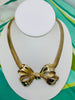 Unleash your daring side with this bold and adventurous 1980's Gold and Black Mesh Necklace. Make a statement with this unique piece that adds a touch of edge to any outfit. Embrace the risk-taker within and stand out from the crowd.