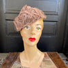 1960s black velvet ring hat with netting and feathers. Tiny pom poms scattered on the netting. There are sequins to decorate the base of the feathers.