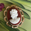 This classic cameo brooch will add a touch of elegance to any look. Measures approximately 1.5 inches in width and 2 inches in length.