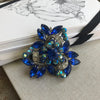 Measures approximately 1.5 inches with a .75 inch aurora borealis center rhinestone. Excellent condition.