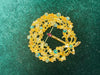 This audacious snowman brooch commands attention with its glittering white form and darling golden waving mittens. A charming broom and crimson scarf add character, while the signature black top hat crowns this jolly winter icon. Perfect for those who dare to embrace festive flair with fun.